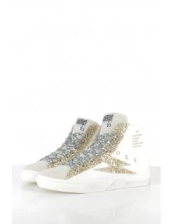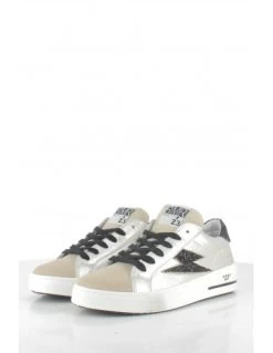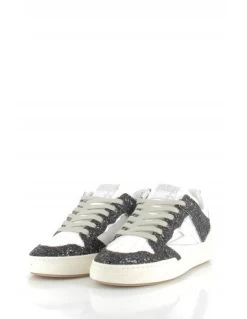 Semerdjian Baskets De Ville Femme Chita 10645 Cuir Blanc/noir/leopard/paillette Argent