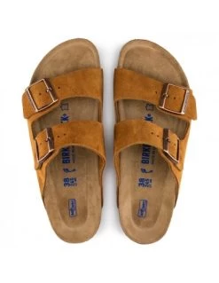 Le célèbre modèle Birkenstock Arizona revient cet été avec une exécution en daim gras marron.