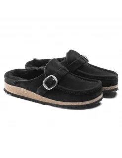 Birkenstock Sabots Fourrés Femme Buckley Suede Shearling Daim Noir