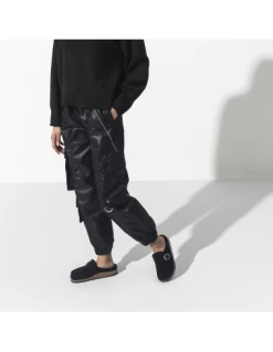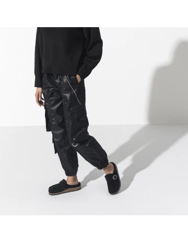 Ce sabot couleur noir présente une tige en daim avec un intérieur de pied entièrement fourré avec un mouton de très belle qualité.