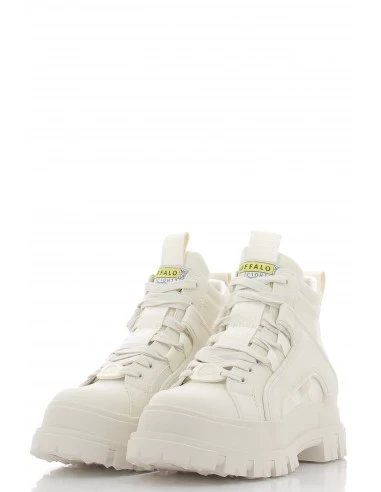 Buffalo Boots Compensées Femme Aspha Nc Mid Laceup Cuir Blanc