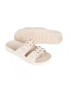 Ce modèle Florianópolis Babies Craie propose une tige en EVA confortable et deux lanières fixes sur le coup de pied.