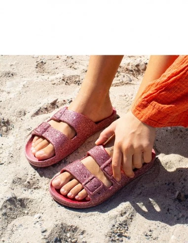 Cette claquette pailletée pour enfant propose une tige en Eva parfumée.