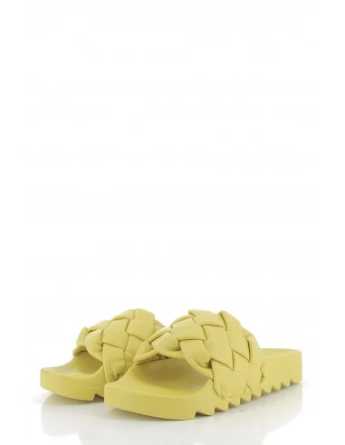 Optez pour cette paire de claquettes tressés de couleur jaune,