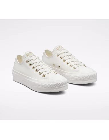 Converse Lift Ox en simili cuir blanc avec œillets dorés.