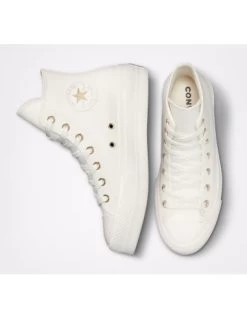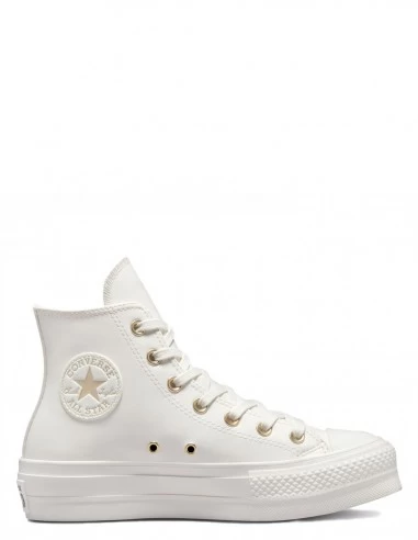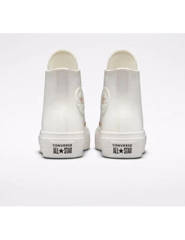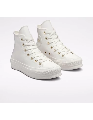 Converse Sneakers Compensées Montantes Femme Ctas Lift Hi Vintage Cuir Blanc