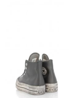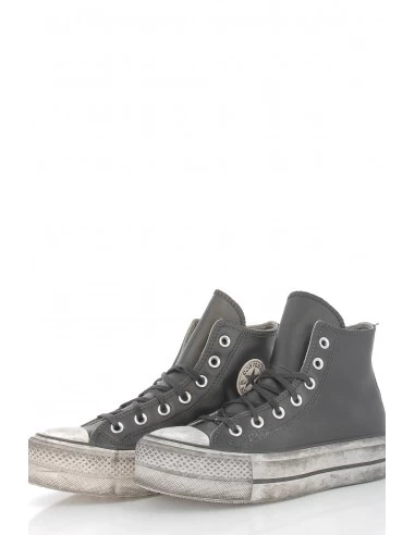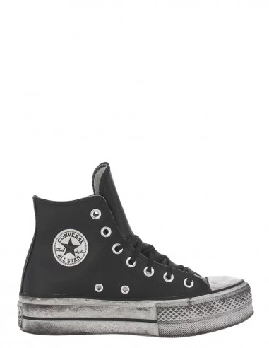 Converse Sneakers Compensées Montantes Femme Ctas Lift Leather Hi Cuir Noir Effet Vieilli