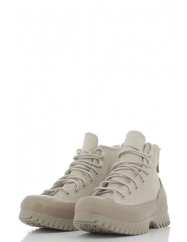 La ctas lugged 2.0 cc hi propose une imposante semelle crantĂ©e capuccino ainsi qu’une tige en cuir papyrus.