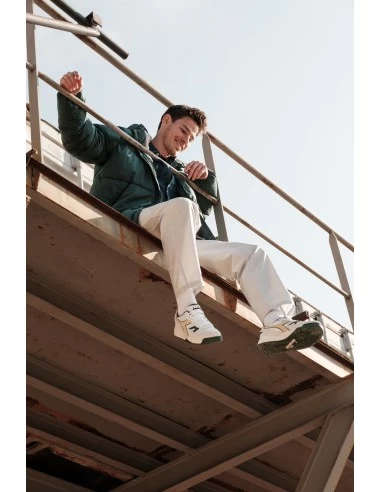 La Winner Sl de chez Diadora propose une semelle en cuir blanc accompagnĂ© d’empiècements en suède beiges et verts gazon.