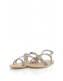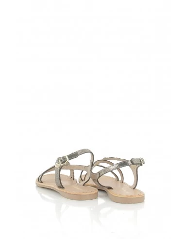 Cette sandale à boucle propose une tige entièrement en cuir or et un médaillon doré  » Les tropéziennes par M.Belarbi »