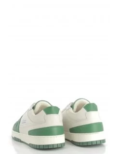 Ce modèle vintage présente une tige en cuir verte et blanche.