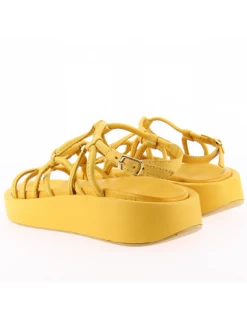 Mosaic Sandales Compensées Femme Yellow Cuir Jaune