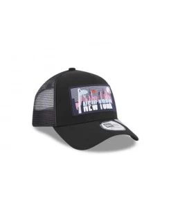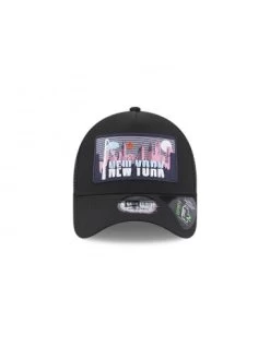 Casquette New Era en nylon noir avec plaque New York colorée.