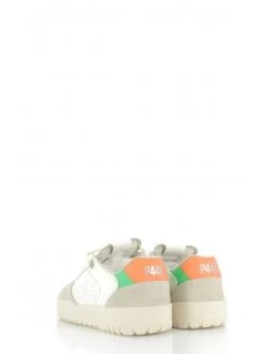 P448 Baskets De Ville Homme Mason Cuir Blanc/orange/vert