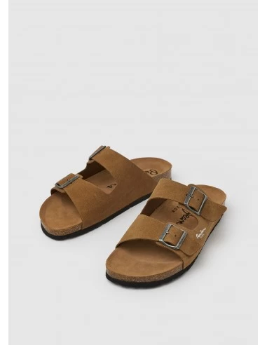 Pepe Jeans Sandales Homme Bio Daim Marron Camel