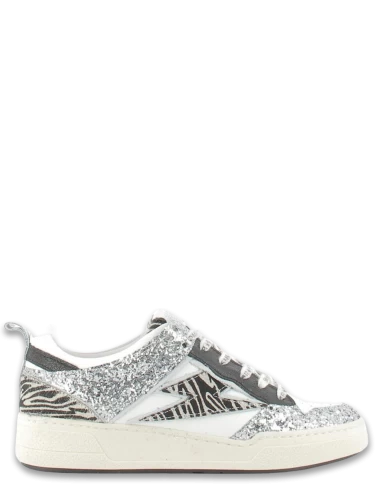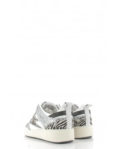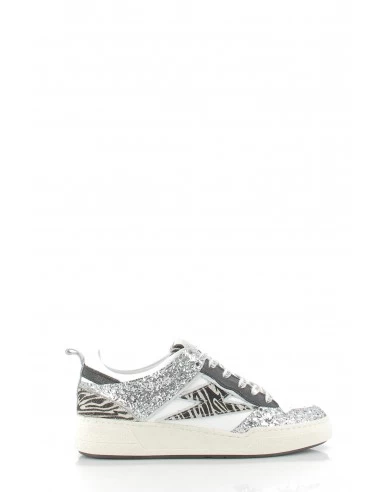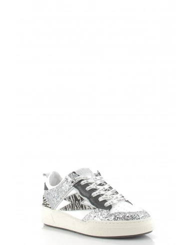 Semerdjian Baskets De Ville Femme Chita 10645 Cuir Blanc/noir/leopard/paillette Argent