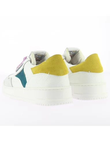 Semerdjian Baskets De Ville Femme Rio 8387 Cuir Blanc/jaune/vert/rose