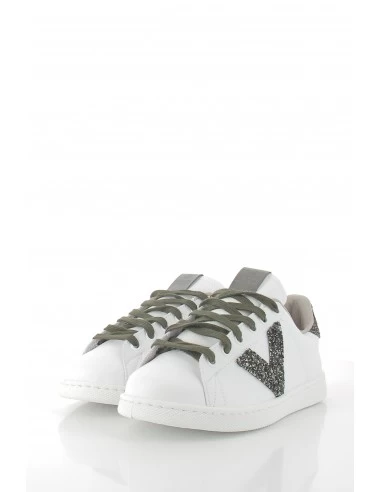 Les classiques tennis Victoria en cuir, en blanc avec le logo Victoria découpé sur le côté.